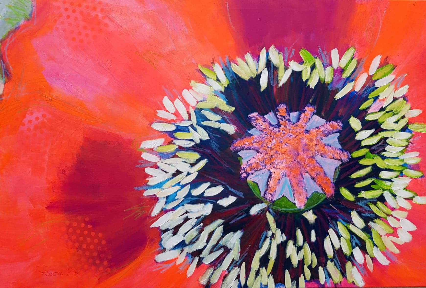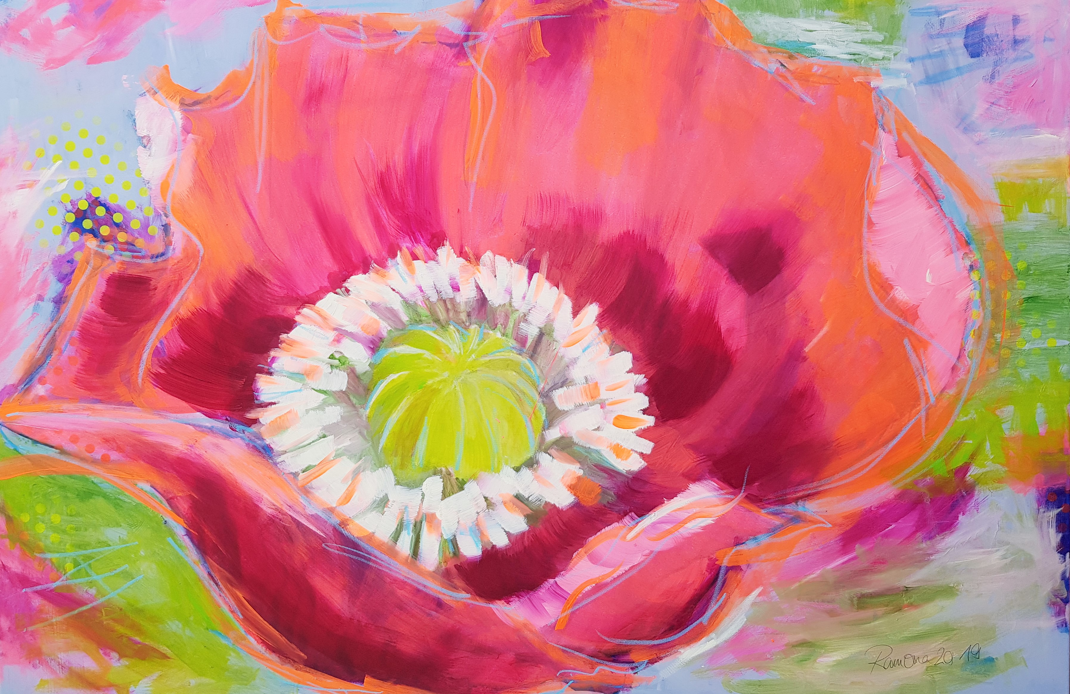 in Aussicht auf einen baldingen Sommer präsentiere ich hier die Mohnblumen-Reihe 2019. Wer die Sonne schon jetzt im Wohnzimmer haben möchte, kann die Arbeiten käuflich bei mir erwerben.