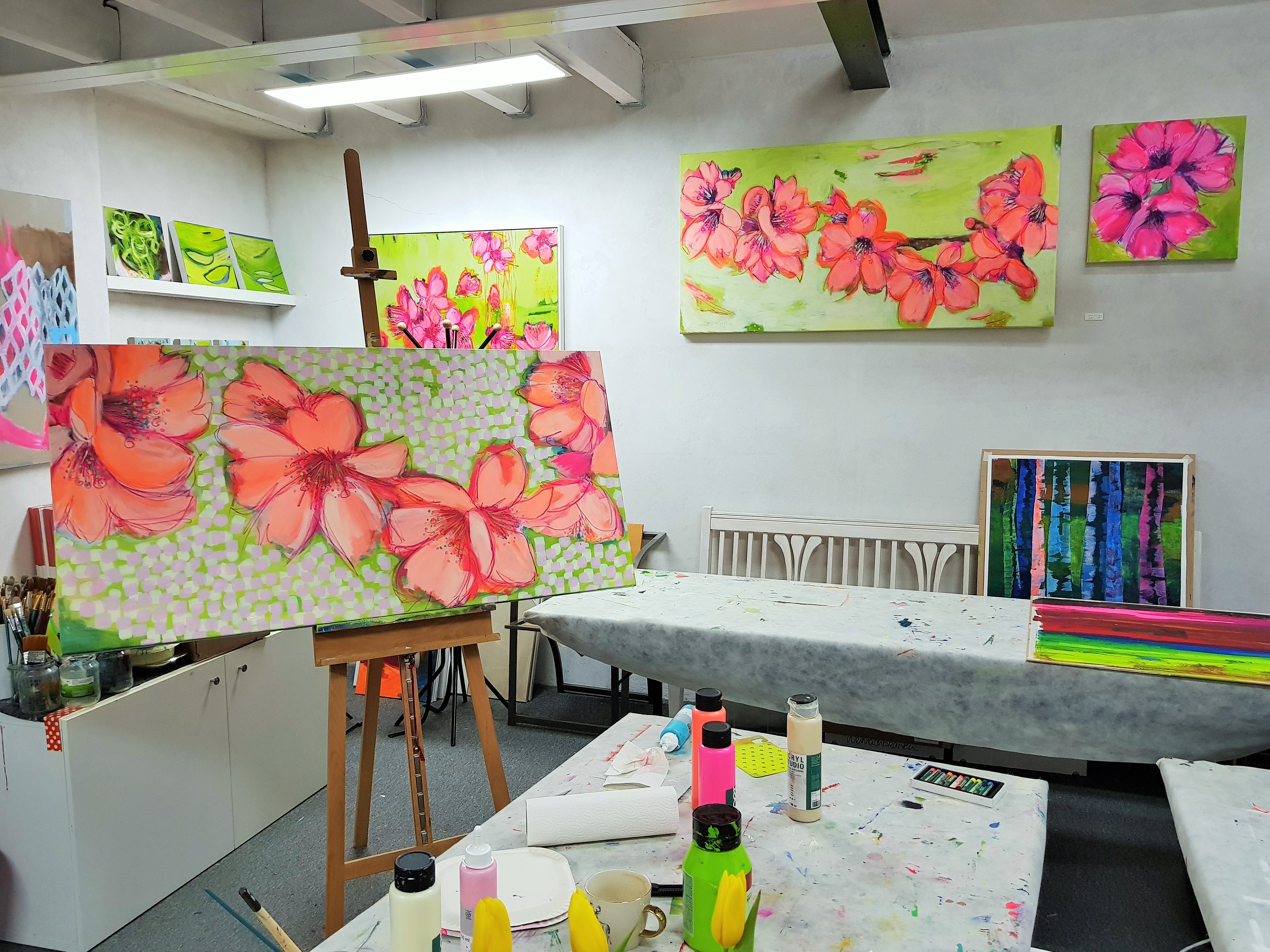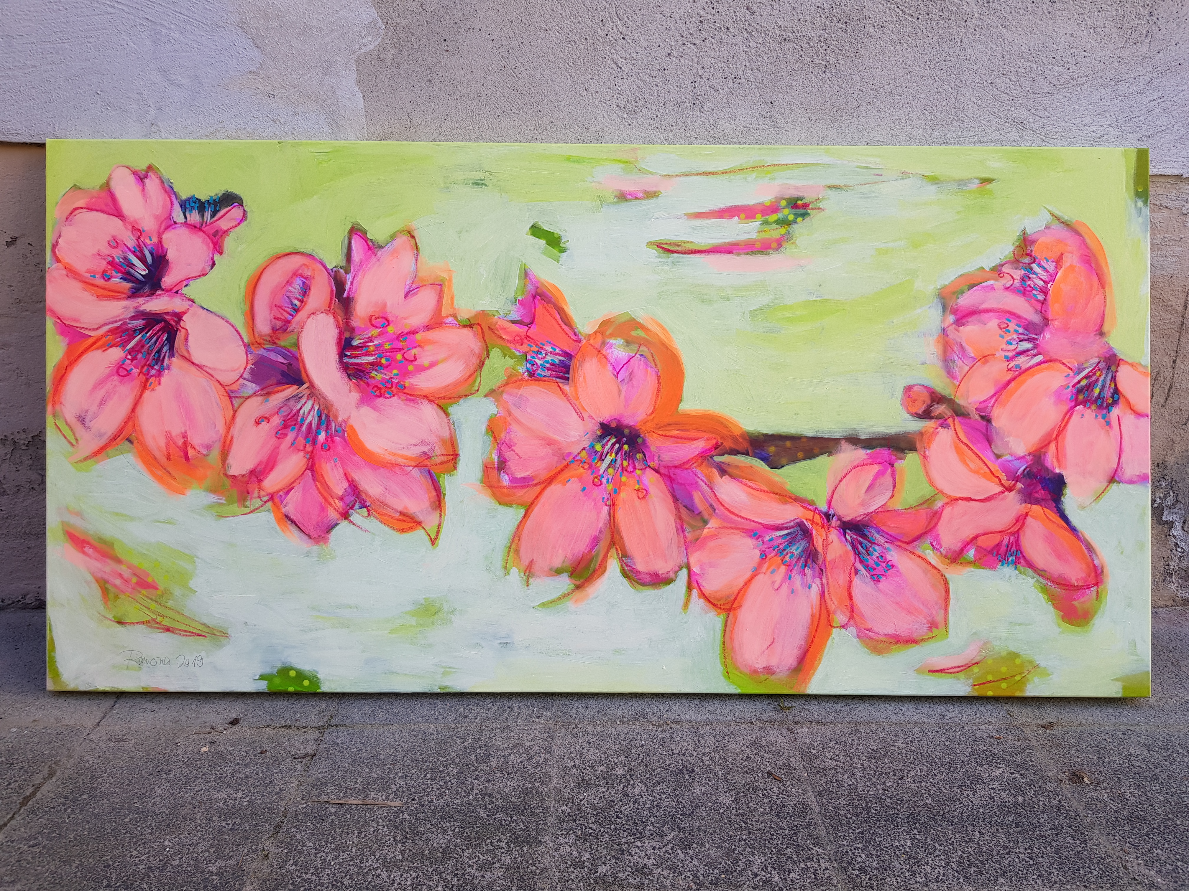 anbei seht Ihr „malfrisch“ die Mandelblüten Reihe 2019, passend zum Gimmeldinger Frühlingsstart. Wer die Sonne schon jetzt im Wohnzimmer haben möchte kann die Arbeiten ab sofort käuflich bei mir erwerben.
