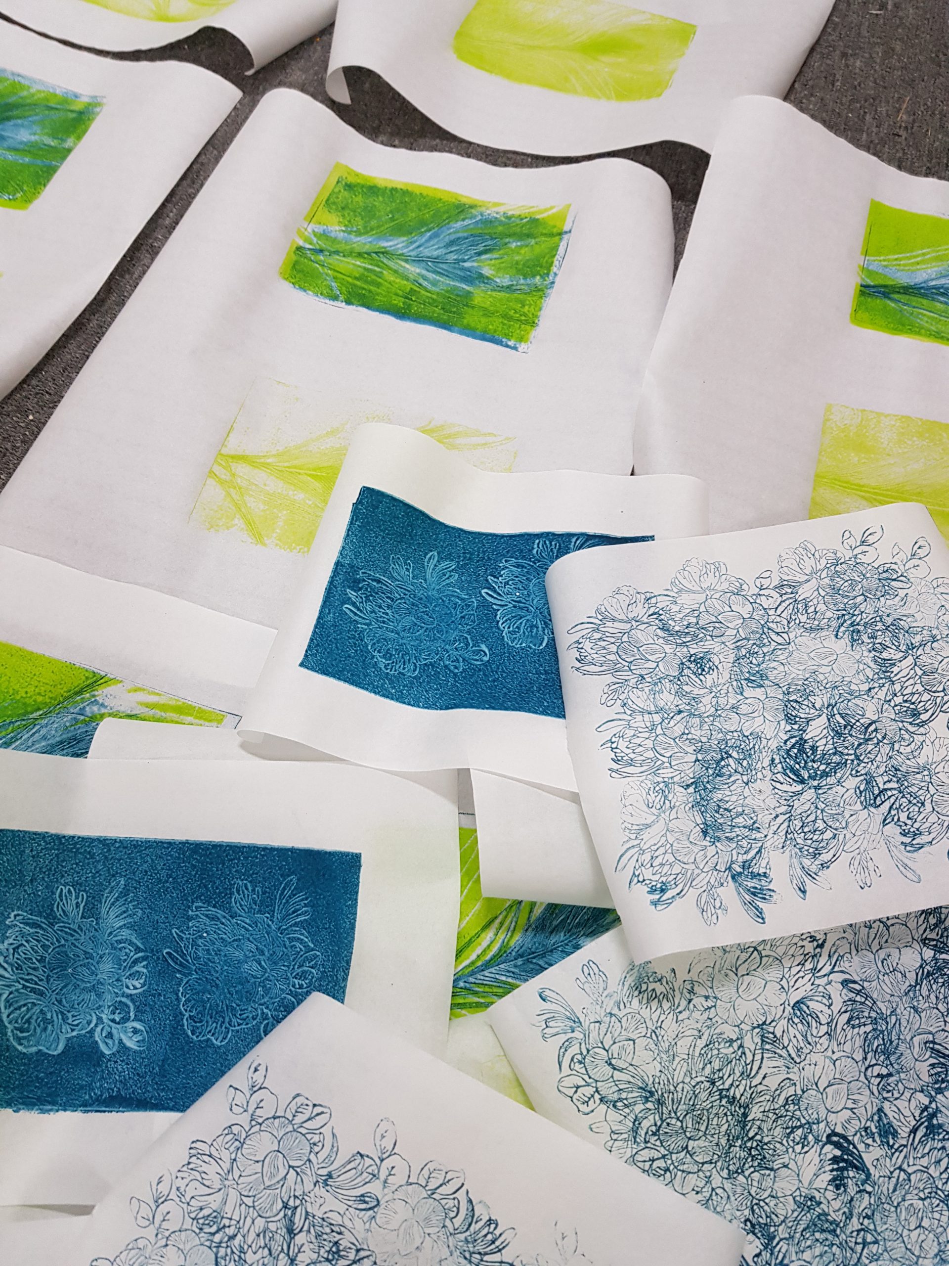Zum Workshop bereite ich ein Materialpaket vor, welches mehrere handgefertigte Wachsfarben-Resist-Drucke und weitere Monotypien auf Wenzhou Papier beinhaltet, sowie noch einige Specials im Wert von ca 35 Euro, dieses ist im Seminarpreis enthalten. Deshalb ist die Anmeldung nur bis 15. November möglich.