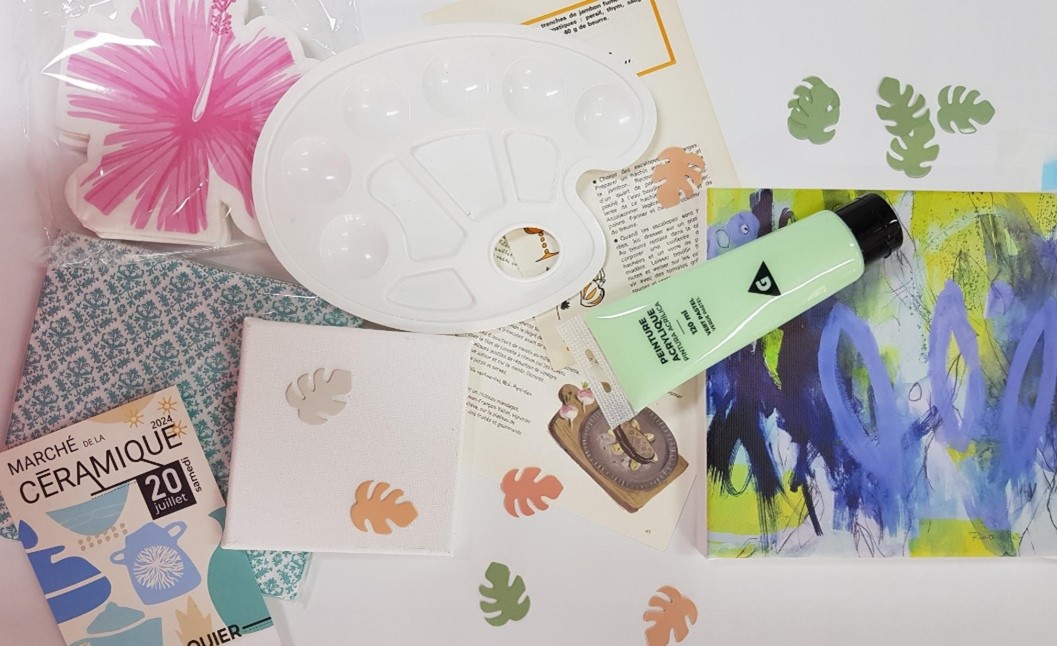 ONLINE-Workshop „Collage auf bedruckter Leinwand“, Format 20 x 20 cm