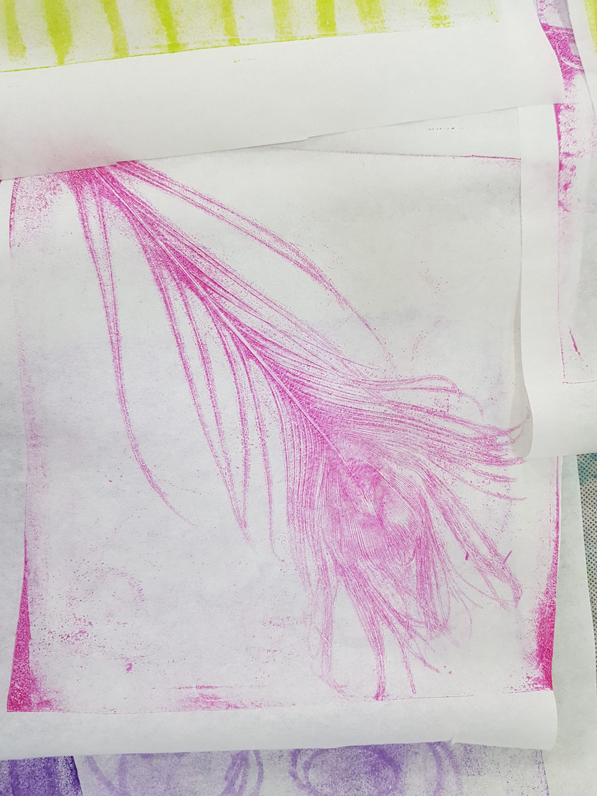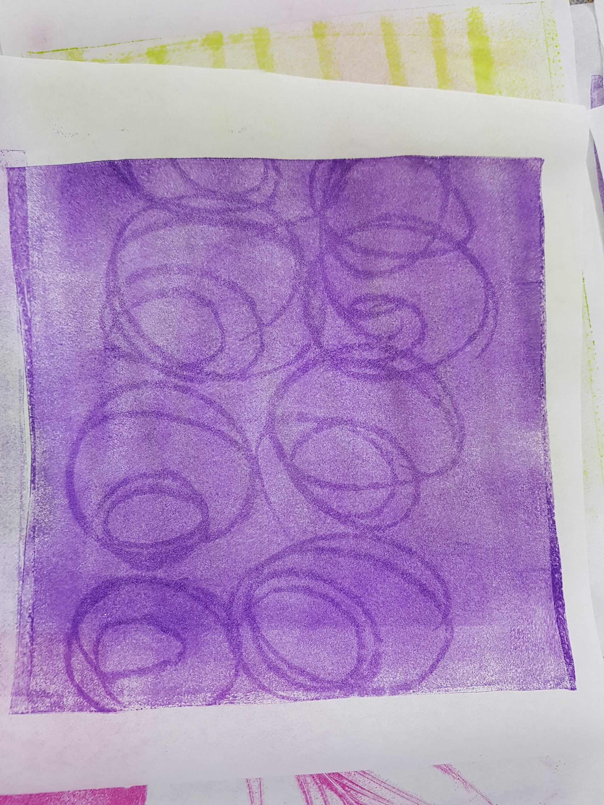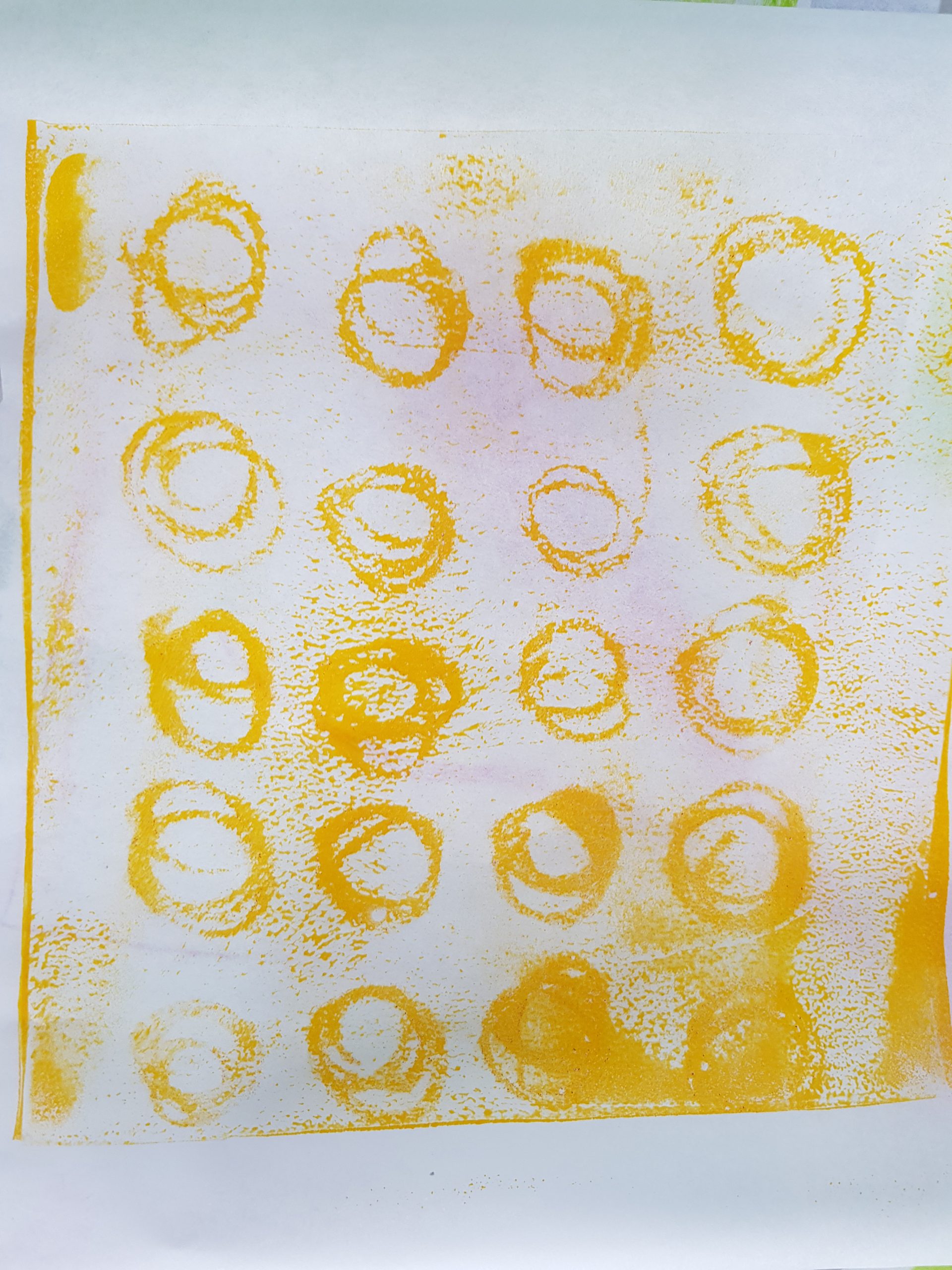 ONLINE-Workshop „Collage auf der Leinwand“, Wachsfarben-Resist-Drucke