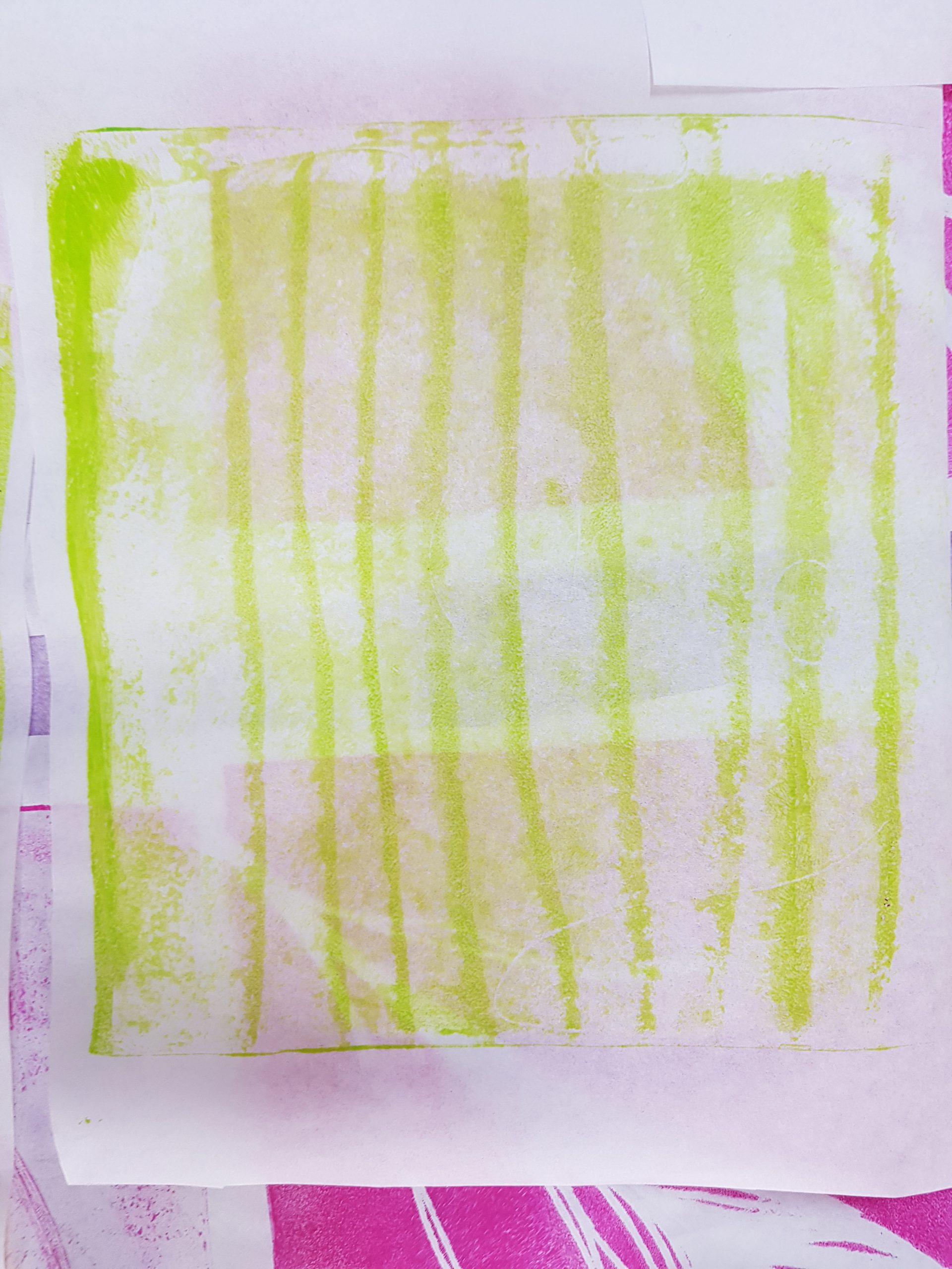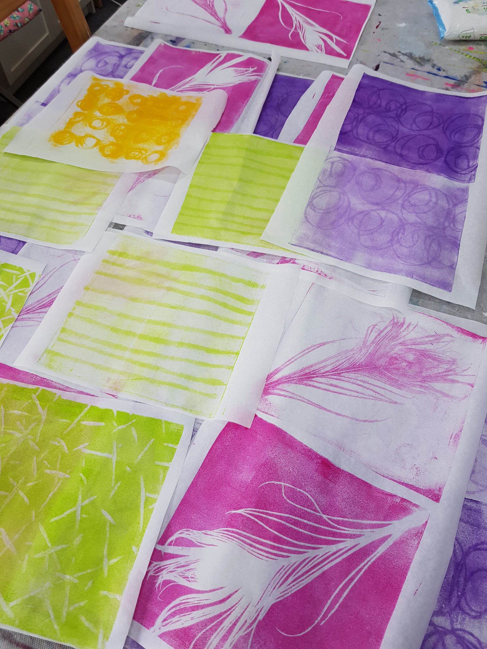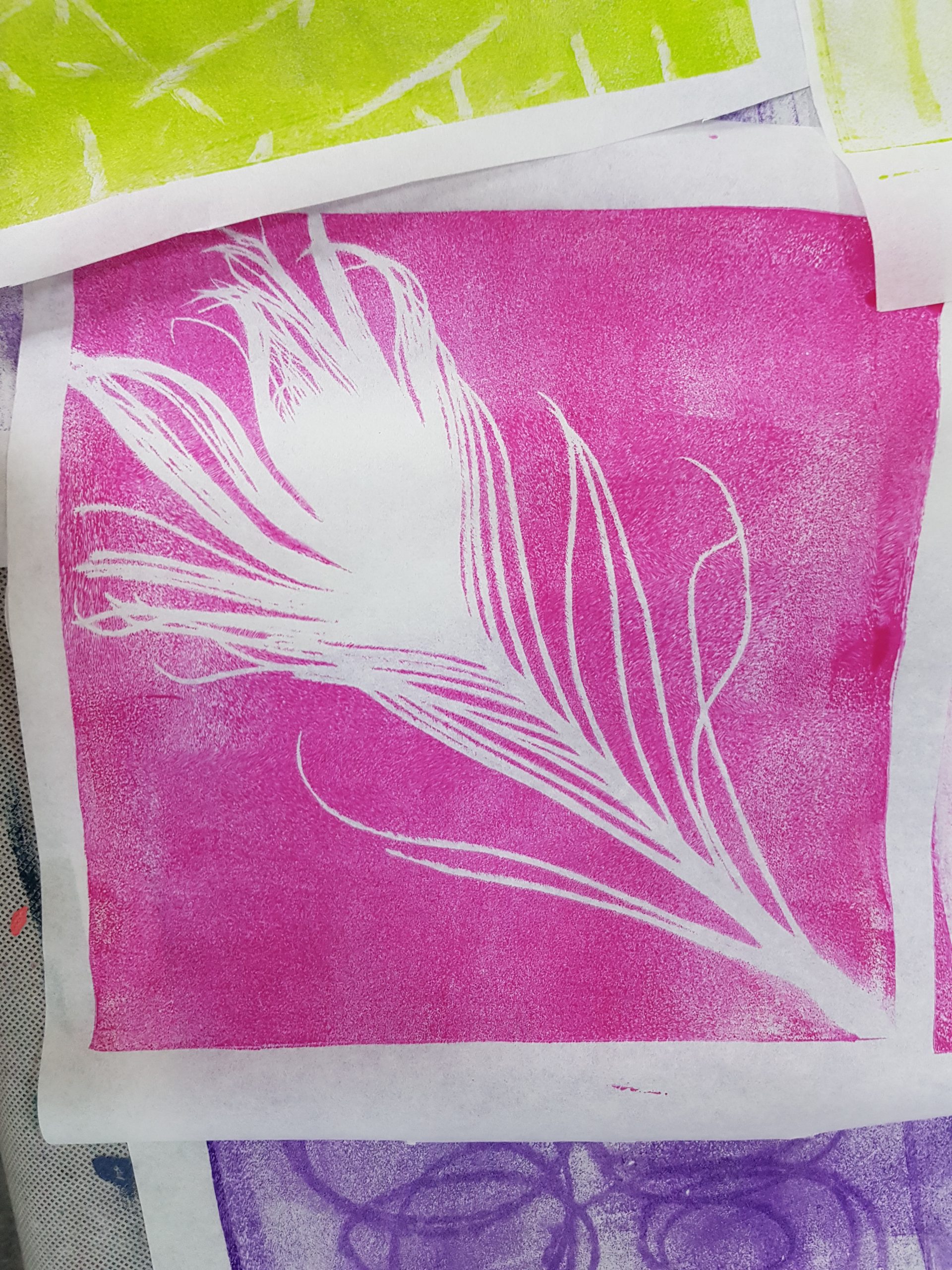 ONLINE-Workshop „Collage auf der Leinwand“, Wachsfarben-Resist-Drucke