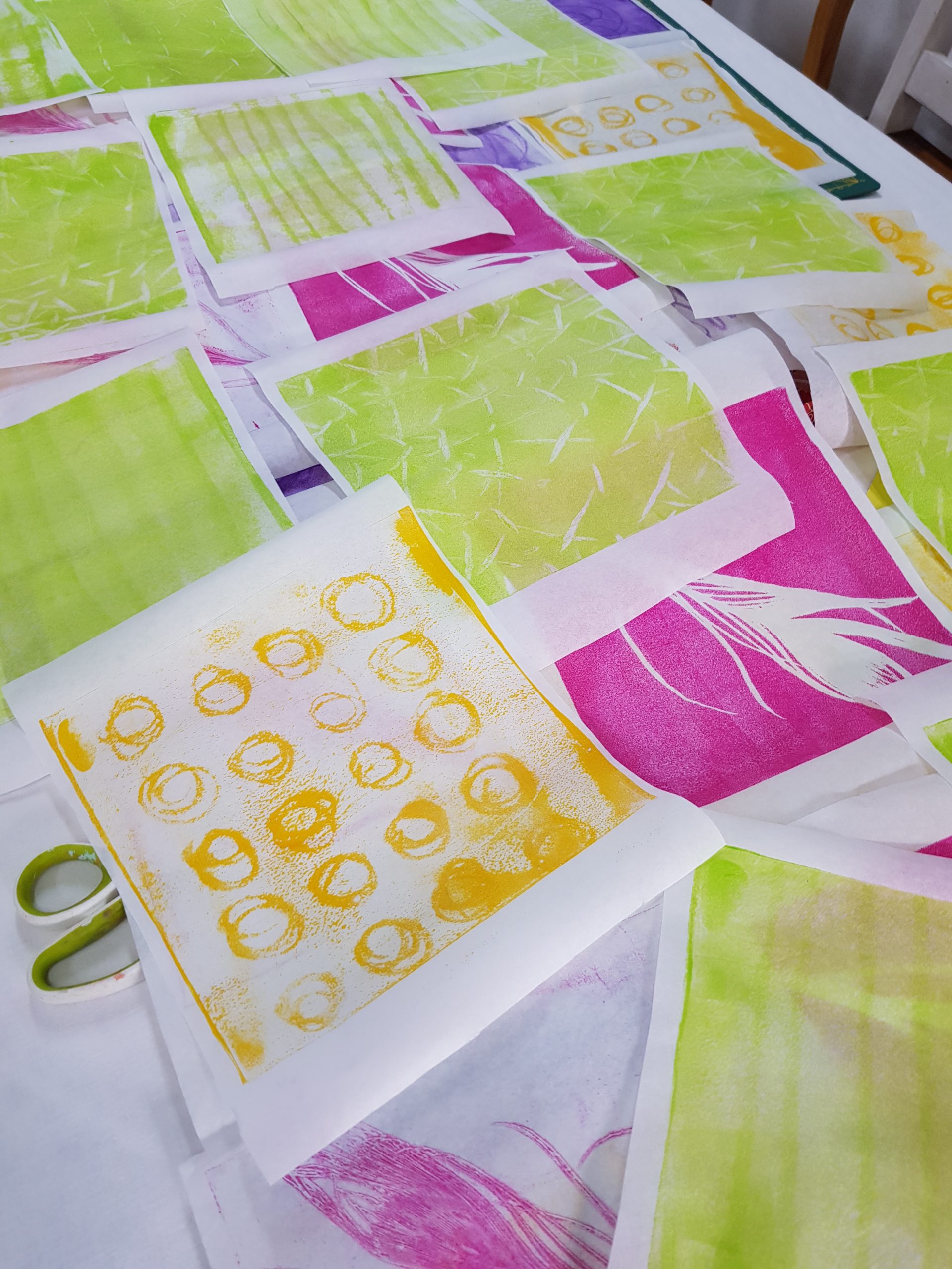 Zum Workshop bereite ich ein Materialpaket vor, welches mehrere handgefertigte Wachsfarben-Resist-Drucke und weitere Monotypien auf Wenzhou Papier beinhaltet, sowie noch einige Specials im Wert von ca 35 Euro, dieses ist im Seminarpreis enthalten. Deshalb ist die Anmeldung nur bis 15. November möglich.